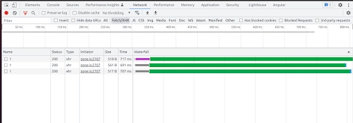 It sends the data in chunks. It is not waiting for all the data to be available and then sending the data at once, it is streaming the data, and that is what the difference between a Promise and an Observable is!