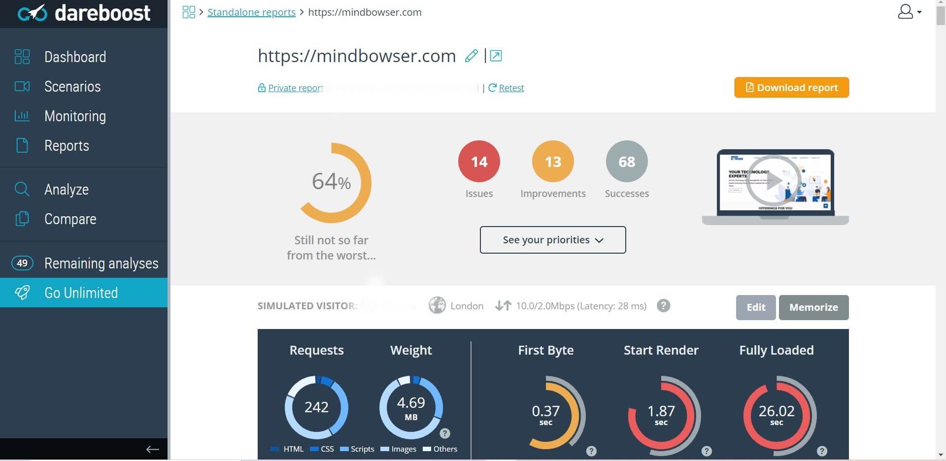 Dareboost is an online website performance testing and analysis platform that analyzes the performance, speed, and functionality of websites. It distinctly picks apart metrics and indicators to show the root cause of a website’s slow down.