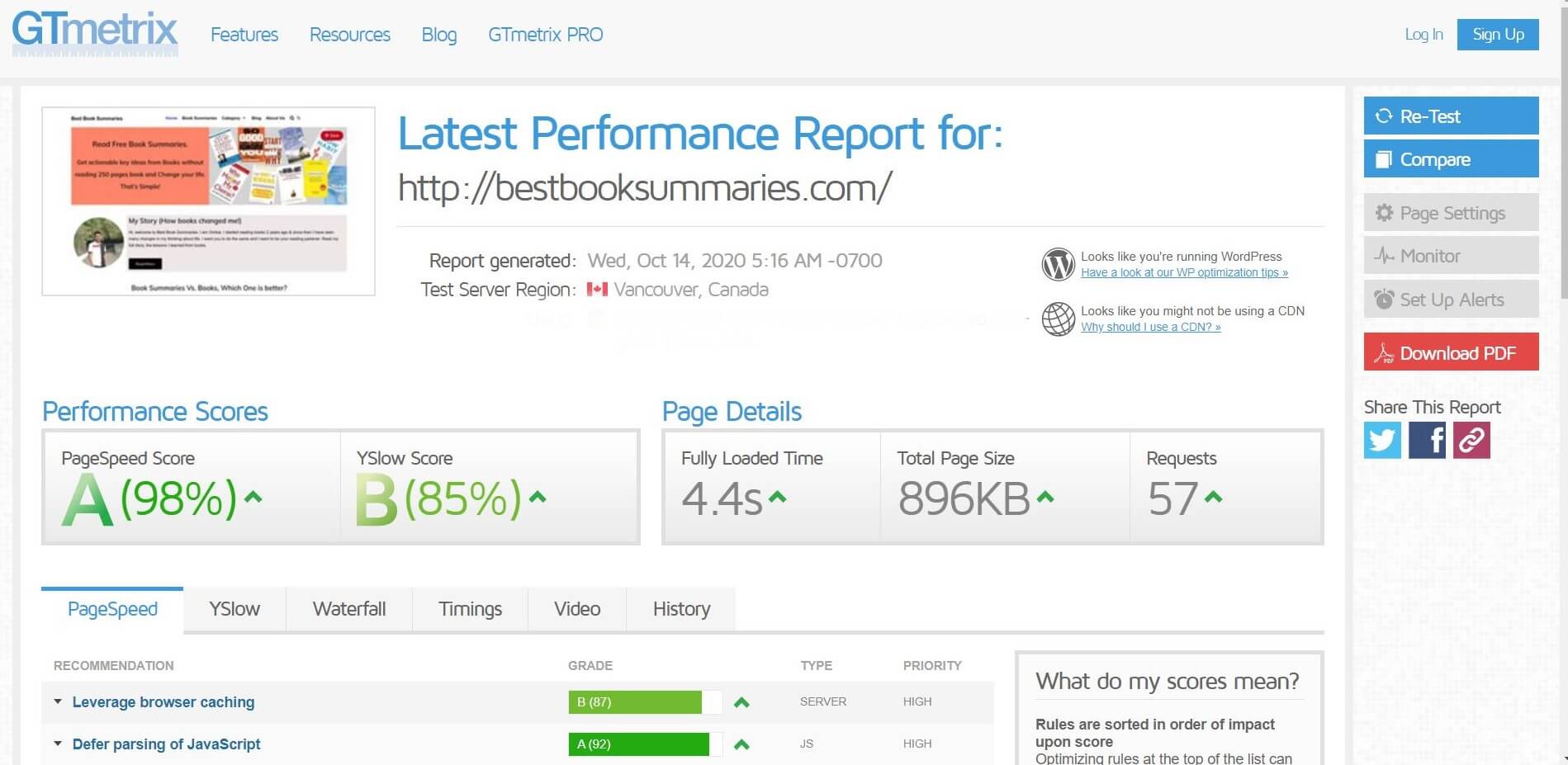 1. GTmetrix ensures a fast load time of websites for clients. GTmetrix is great to know where the site is lagging and how to improve the site to load quickly. Some areas are more important than others and the breakdown from the report is perfect to prioritize the areas for improvement.