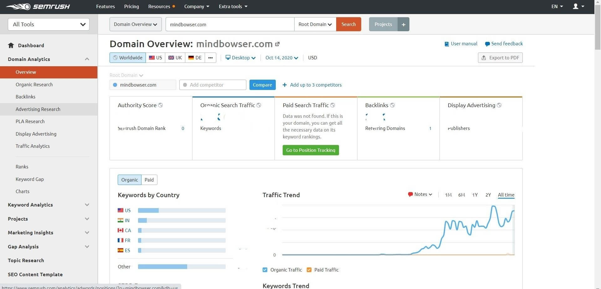 SEMrush offers solutions for SEO, PPC, content, social media, and competitive research all in one place. By setting up SEMRush you can start testing content decision, the performance of keywords, rankings and also track competitors