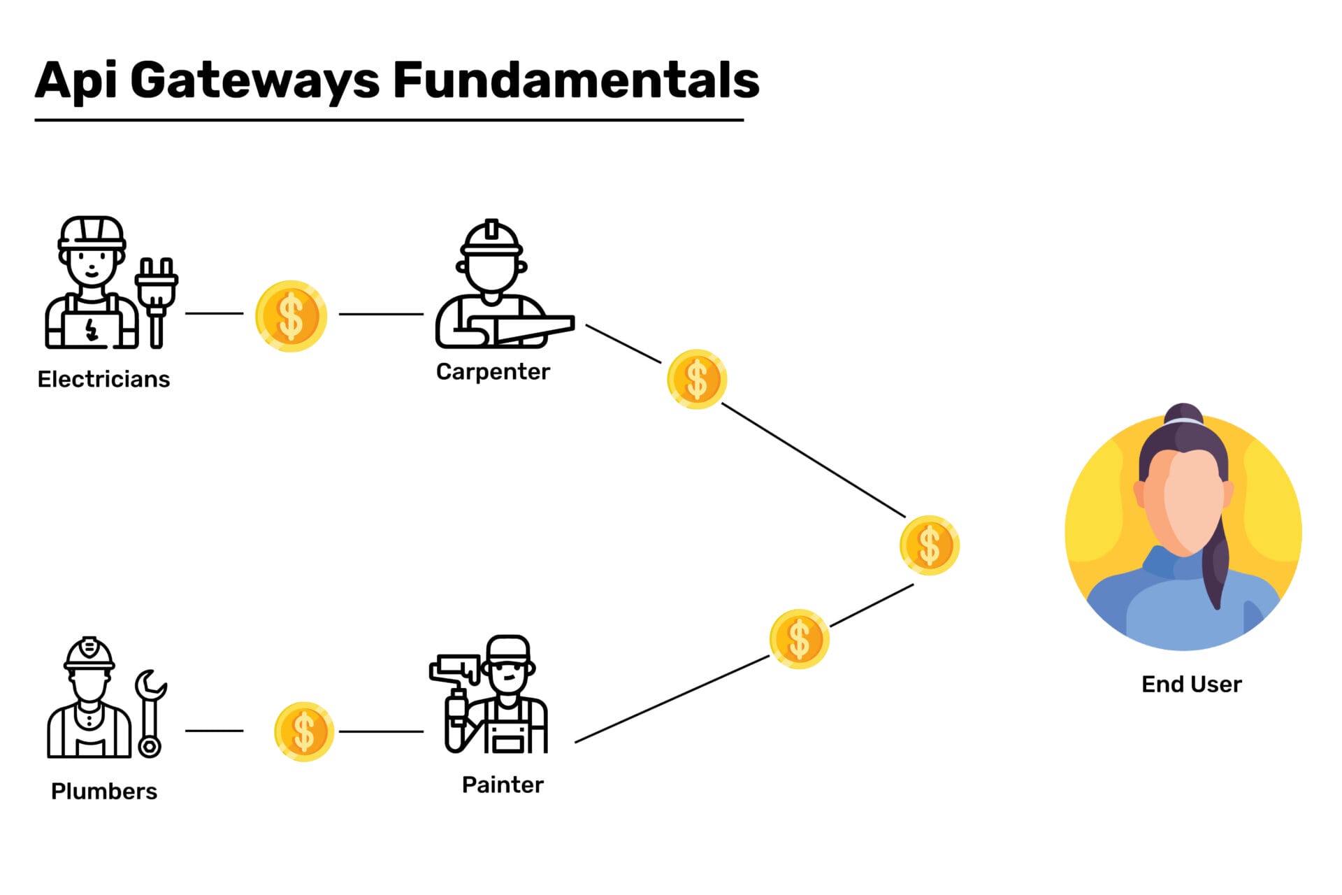 In similar ways, an API Gateway behaves as a contractor and abstracts all the hardships of the end user, for the end user, there is only one point of contact(endpoint), instead of multiple points of contact (microservices). The main contractor(API Gateway), is wise enough to facilitate the requests and return a response from a single point irrespective of the microservice called.