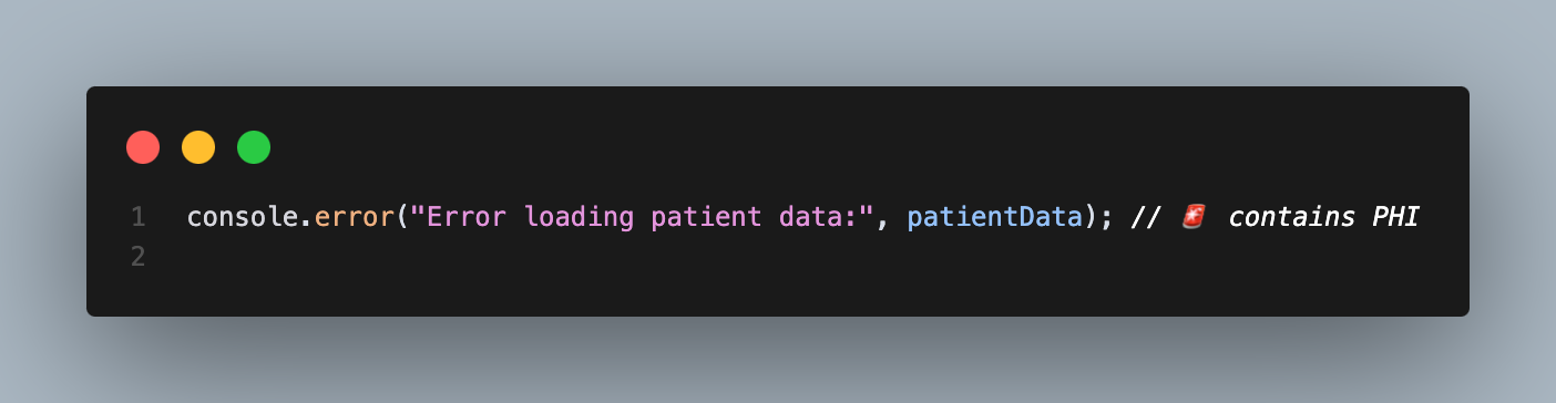 Logging PHI directly is a compliance nightmare. Tools like Sentry, Datadog, or browser console logs can accidentally expose PHI. Avoid including sensitive data in logs or error messages, as this is a critical step in Building HIPAA-Compliant React Applications that protect user privacy.