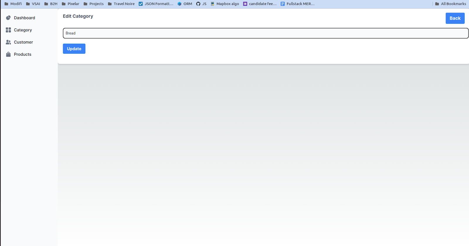 This will help us bind the value to the “name” field, and this is what the final render will look like when we click to update the category.