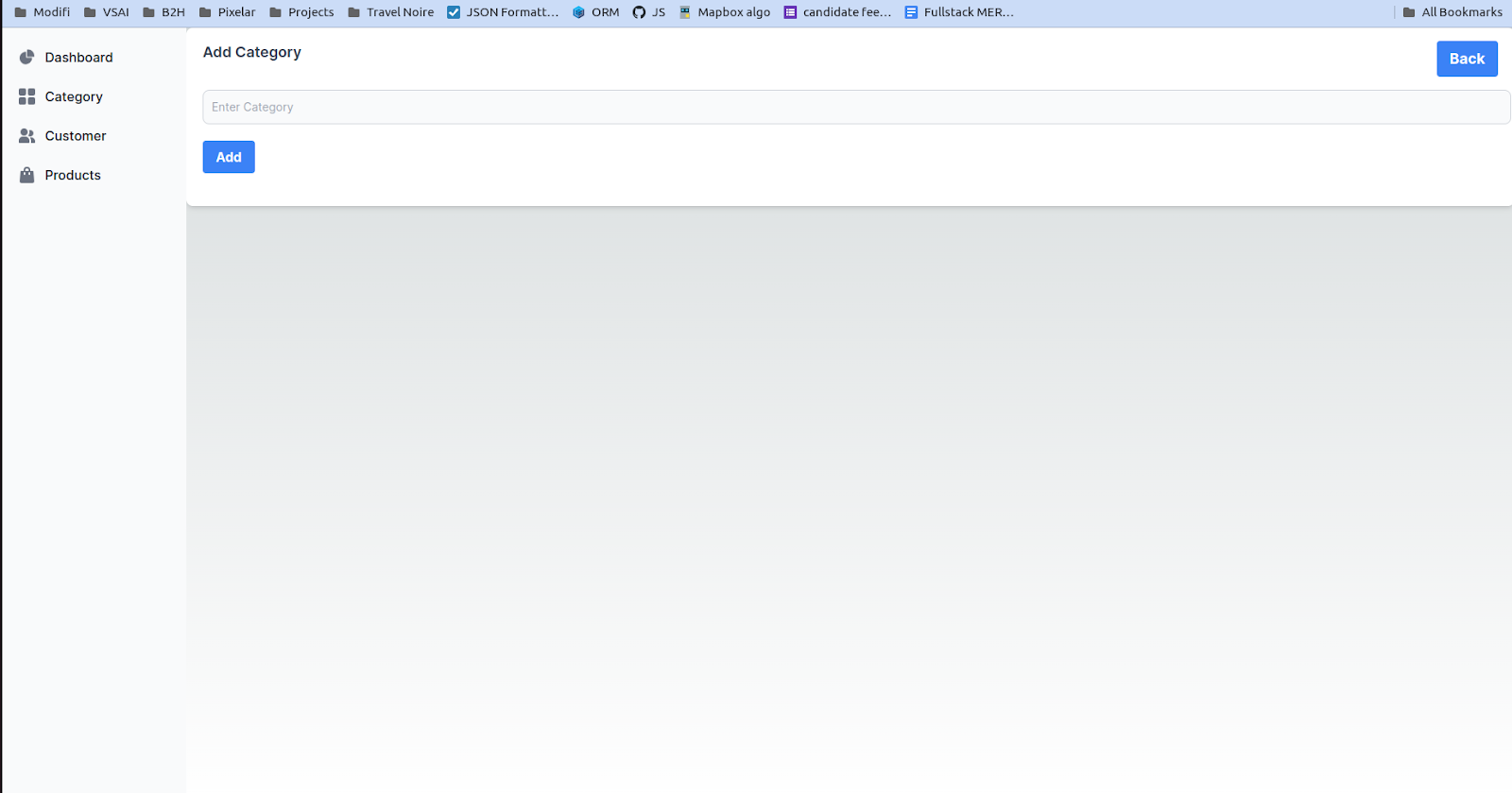 Now when we click on the add category we will be redirected to the form page to add the category.