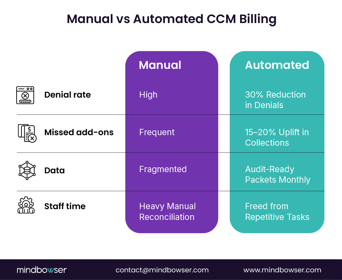 I have observed the same pattern repeat: teams are aware of where their CCM billing breaks, but they attempt to rectify the issue by implementing additional manual checks or hiring more staff. That only drives up costs without solving the core problem. The real solution is automation built directly into the workflow. Let me explain where it makes the biggest difference.
