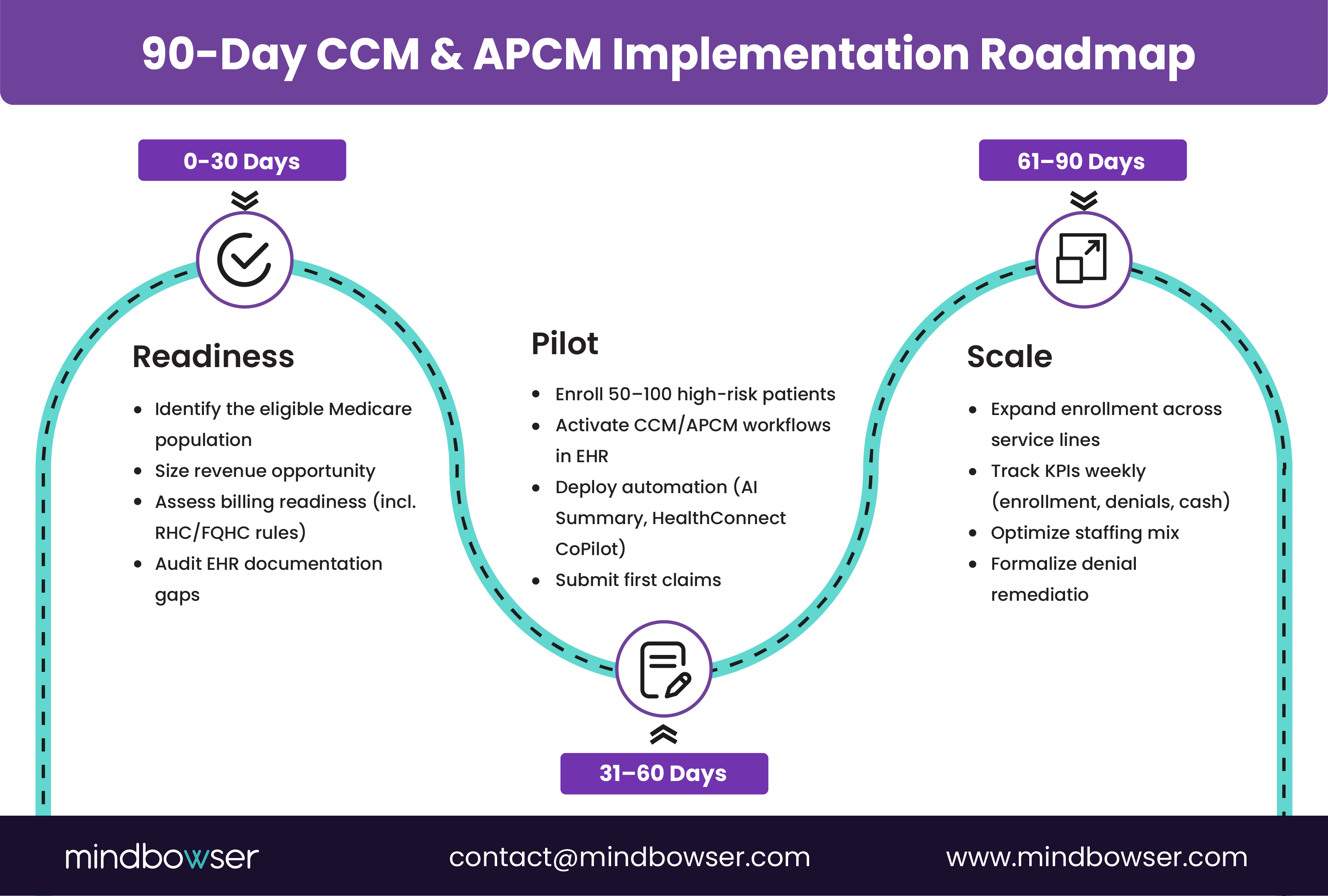 By the end of 90 days, hospitals should have a fully functional CCM or APCM program with clear ROI pathways and operational sustainability.