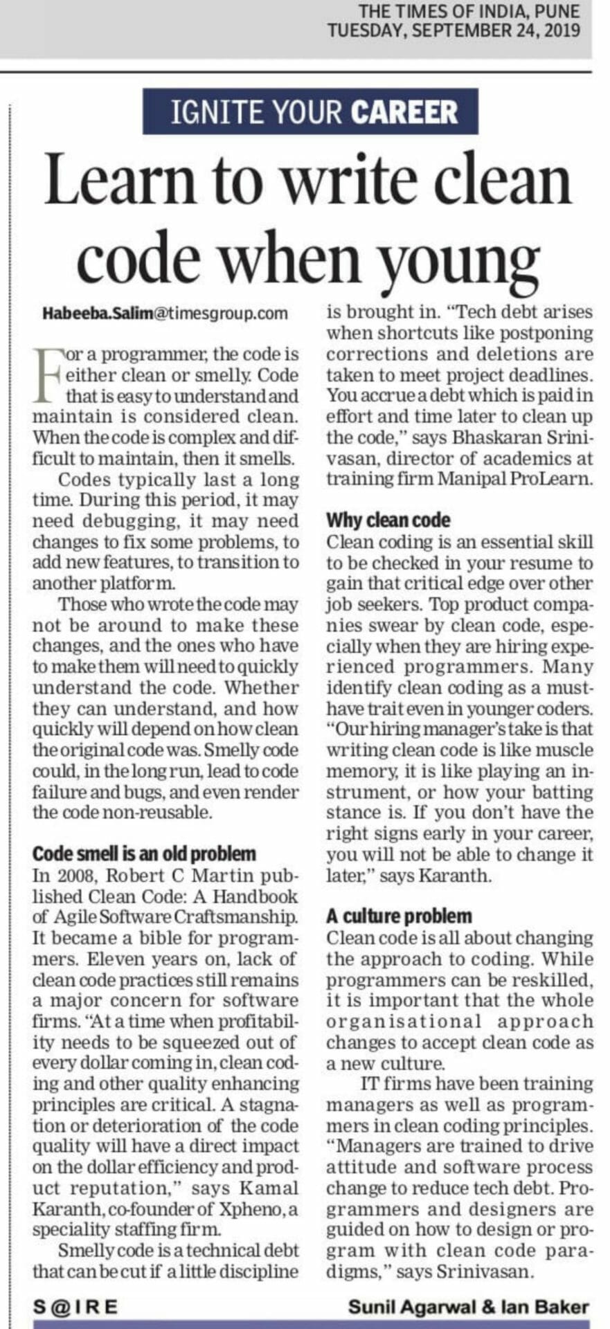 Since we started building Codegrip, I am quite used to Frequency Illusion(aka Baader-Meinhof Phenomenon). Yesterday, a leading English daily ran the following article on code Quality.