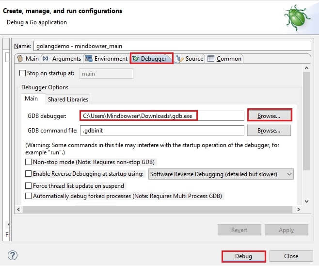 Select Project→ Right Click on Project→ Select Debugger tab from window