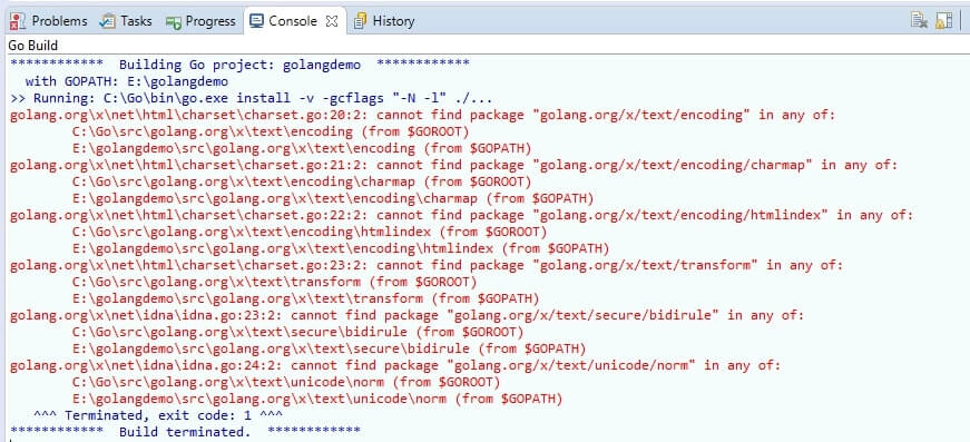 So check the message and identify which package is missing and then go to command prompt and type the >go get <github_url_packageName>