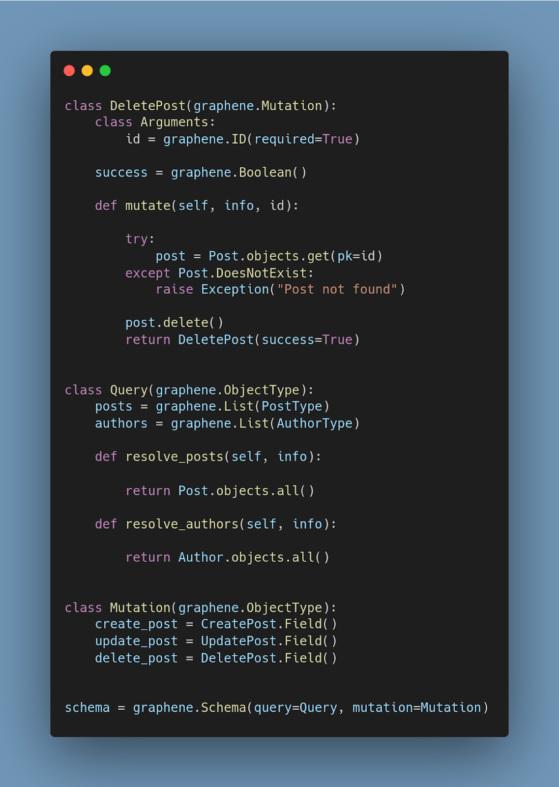 5) Now Create GraphQL Schema and Resolvers Using graphene_django for Blog Application