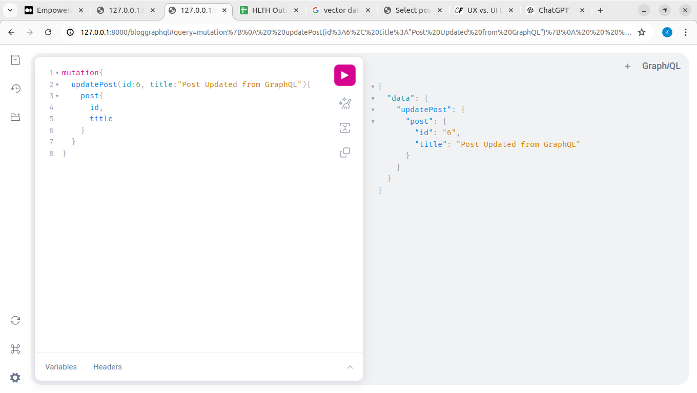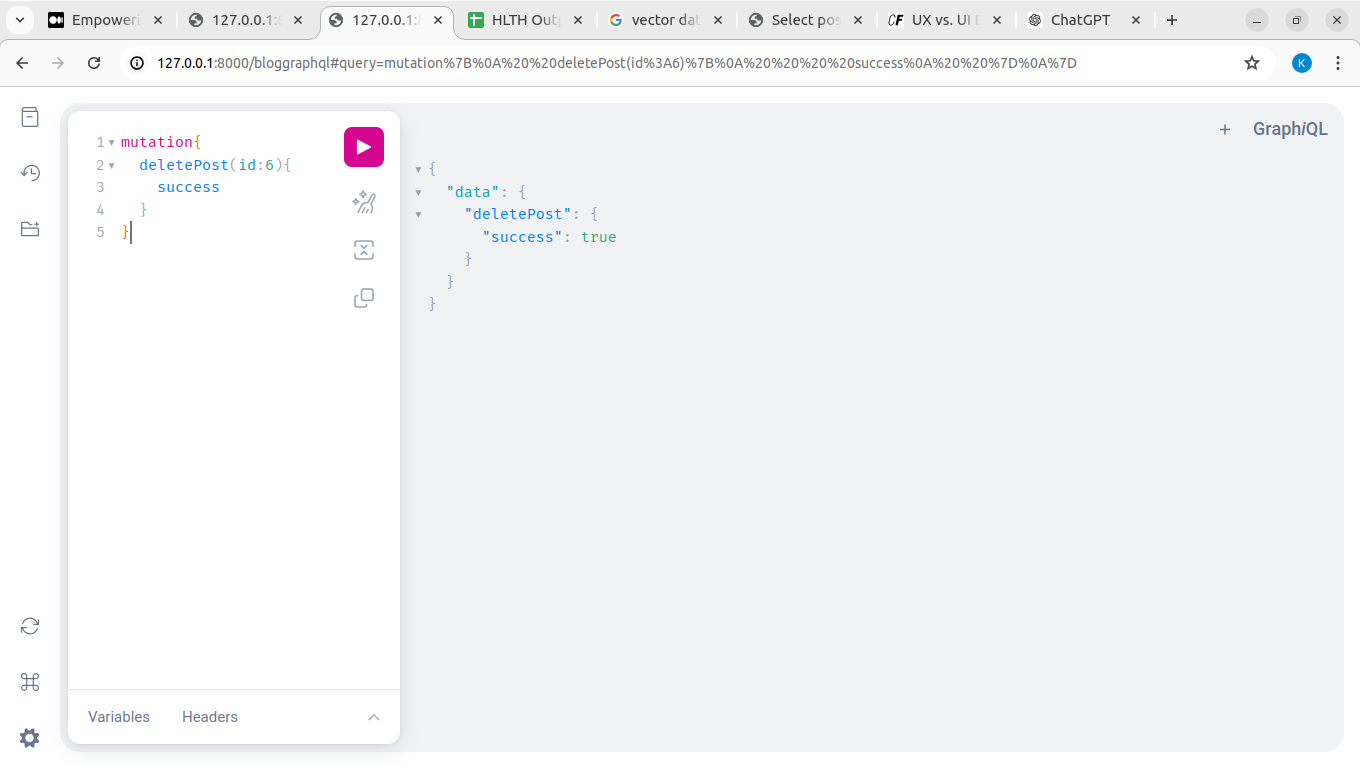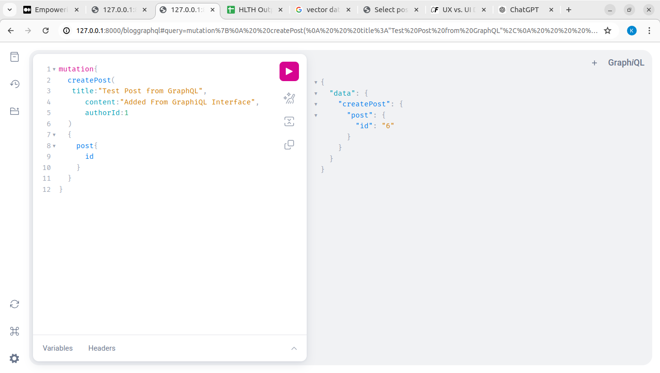 Let’s try out our Create Post Mutation (assuming you have an author with id=1).