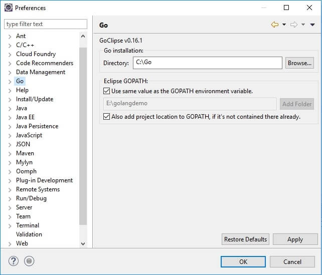 E:\golangdemo  (Name of my Workspace)