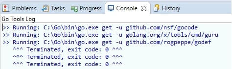 Go to windows menu of eclipse→ select Preferences→ choose Go→ Tools→ Click on Download and it will download the dependencies like gocode, guru, godef, gofmt and click apply