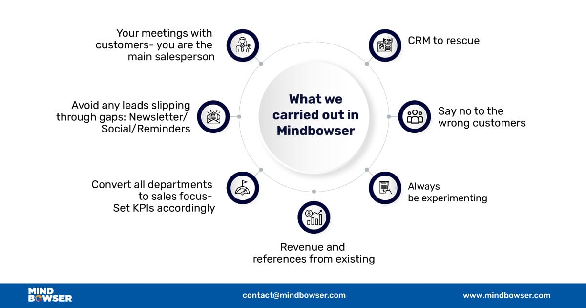 At Mindbowser, we realized the importance of a disciplined sales approach early on. We optimized our efforts by implementing a CRM system that allowed us to keep track of every interaction and follow up efficiently.