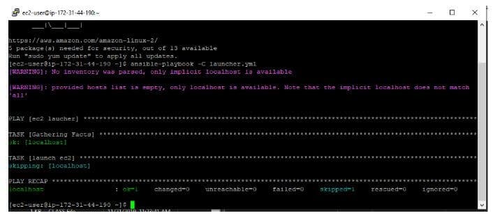 Run below command to check whether Ansible is ready to launch EC2 or not.