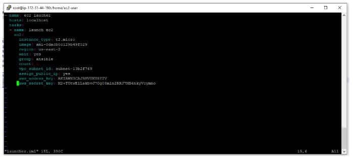 Add your aws_access_key and aws_secret_key which you got from IAM user creation. The rest are the basic details. If you want more details you can visit the Ansible official website. Now our Ansible file is ready.