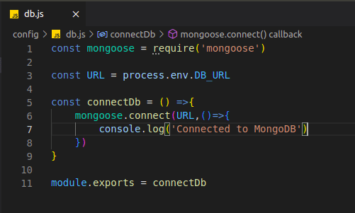 In this config folder, we imported the mongoose module, connected it to our database, and exported the configuration.