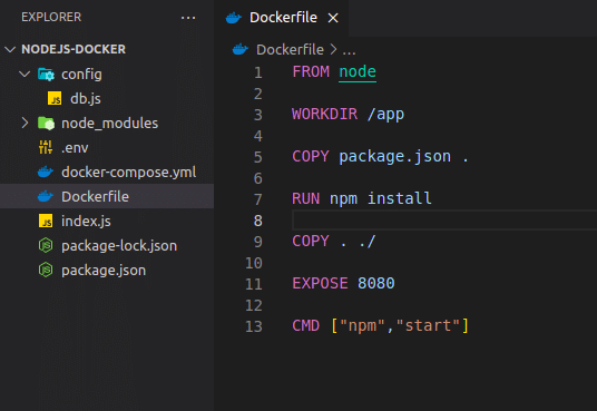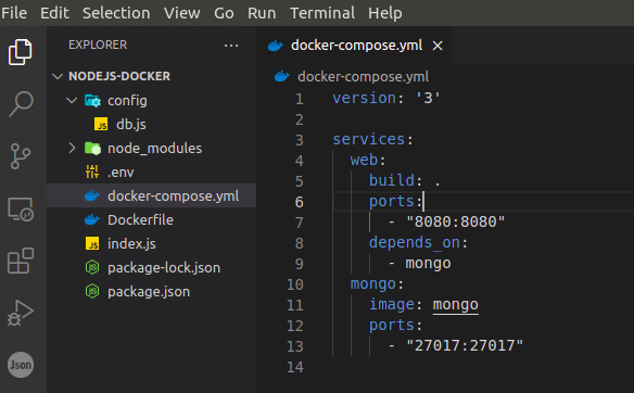 Lastly, we setup our docker-compose.yml for the app and mongo service. This file helps us to build and link our Node.js app to the mongo image.