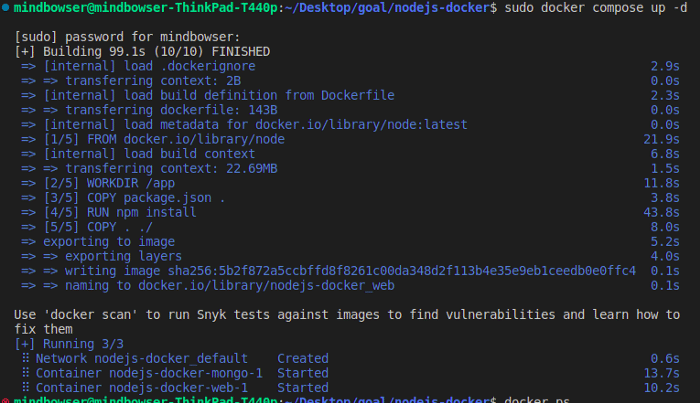 To pull node and mongo images, go to the docker hub and get the official images. Make sure your docker daemon is on. Click on the docker desktop to activate the daemon. To check if your docker is installed on your machine, in your terminal, run