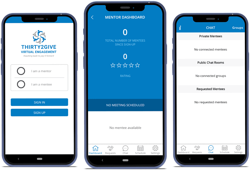 Thirty2give is a global framework for transferring knowledge by forging a 30-day virtual relationship together in public and private chat rooms for the sole purpose of sharing expertise. The application connects mentors and mentees with clear goals and under the purview of milestones. Thirty2Give virtual mentoring facilitates pairing by generation, industry, expertise, and global location through the internet. Mentee merely places a mentoring request, and then from the available list of mentors, he/she can select the mentor best suitably.