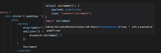 12. So here, as per the above code, when we dispatch increment action, it will automatically create an action and type like the given below. So after that redux reducer state will increment the count as we wrote previously. And when the state updates, our Counter.js component updates the value, and we can show it on screens.