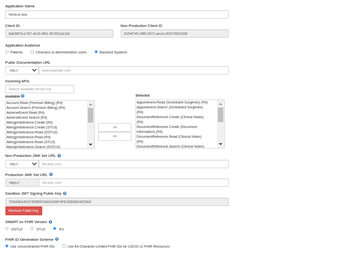• Client ID: Register your backend application with the authorization server to obtain a unique client ID. This ID identifies your application within the Epic community.
