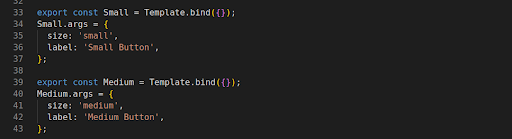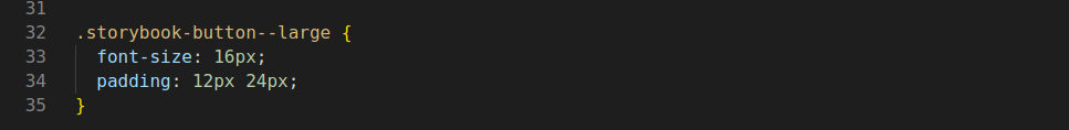 Next, we will add styles in the CSS file in which we will add all the styling that needs to be tested on the component. In the example shown below, we have created a default style and styles for Primary, Secondary, Small, Medium, and Large buttons respectively.