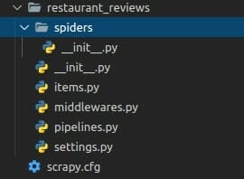 Step 3 => Now we will create 2 items (Restaurant and Review) in items.py to store and output the extracted data in a structured format.