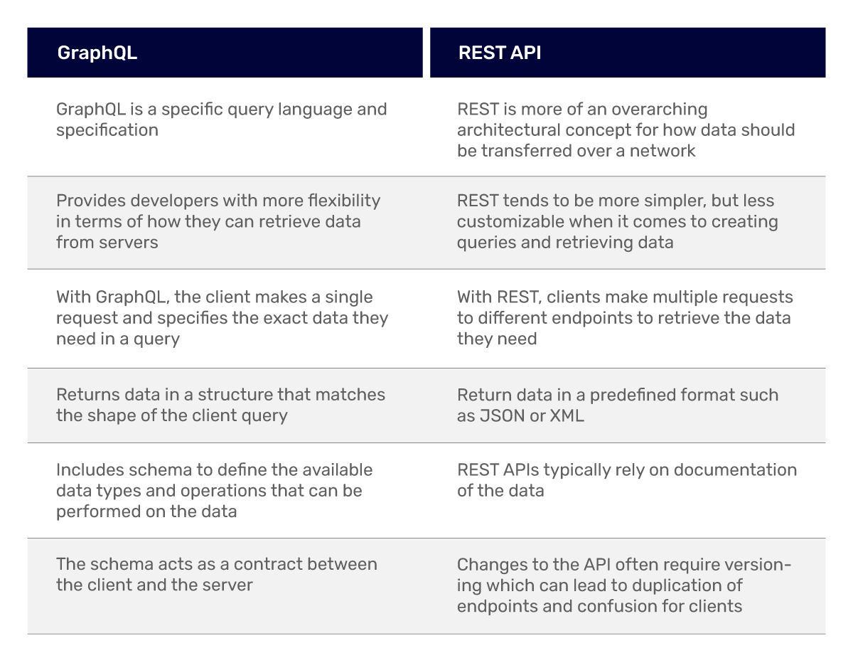 The key difference between the two is that GraphQL is a specific query language and specification, while REST is more of an overarching architectural concept for how data should be transferred over a network.