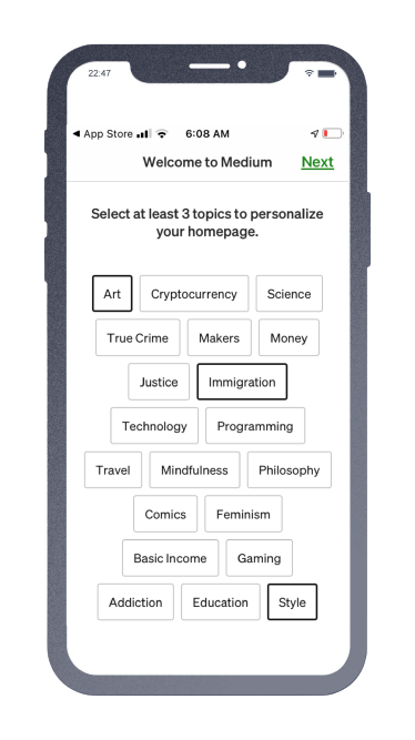 Fig: First time signing up on Medium