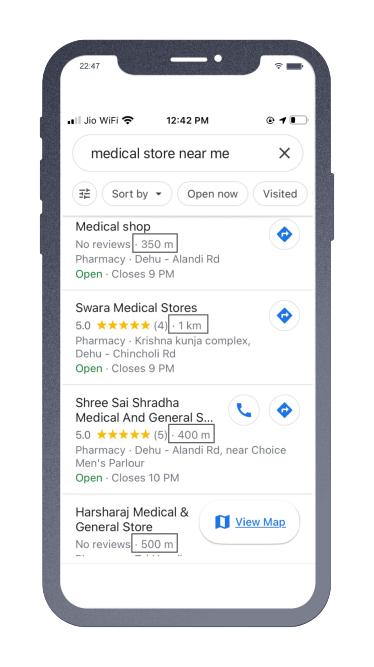 Fig: Google Maps sorts results as they come