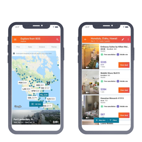 Fig: Kayak using a mix of visualization and content placed perfectly