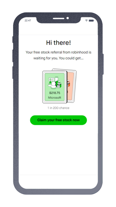 Fig: RobinHood Platform now offers a free stock through a lucky draw type setting