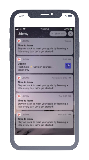 Fig: Udemy push notifications